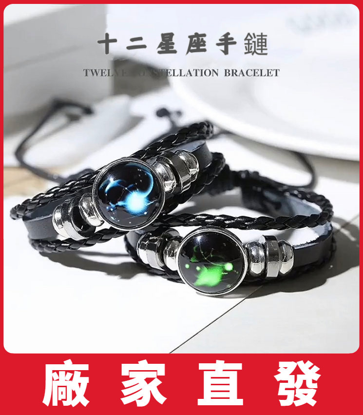 十二星座手鍊情侶皮手鍊多層編織時尚,夜光十二星座手環飾品小清新